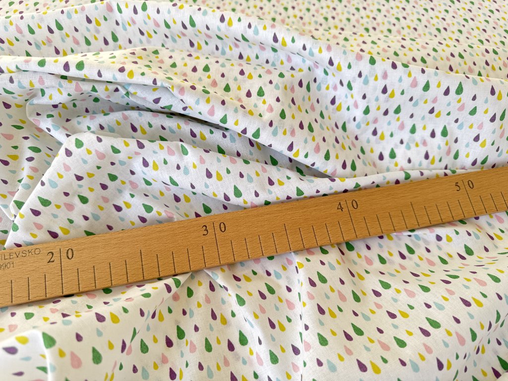 Veselá, měkká, bavlněná látka. Vhodná jak na oblečení (sukýnky, šaty, kraťasy, kalhoty), tak i na dekorace, tašky, taštičky, závěsy, kapsáře atd..
