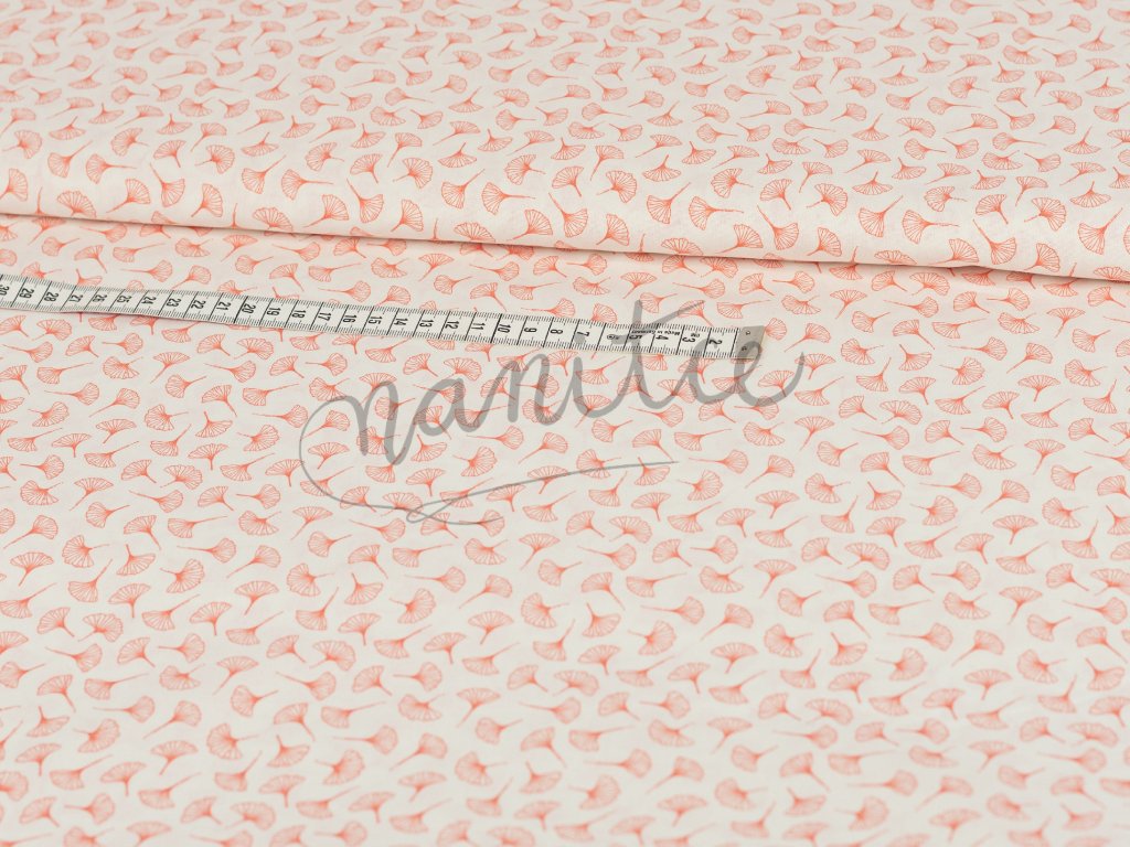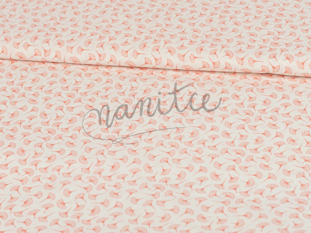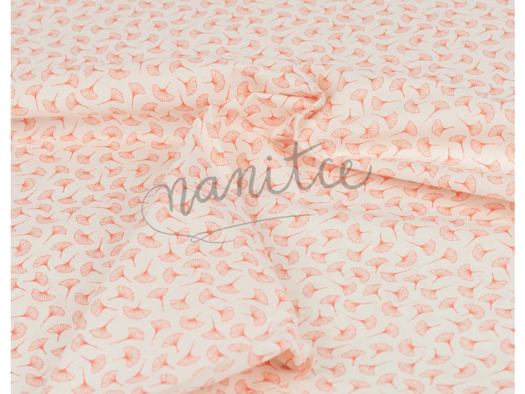 Bavlněné plátno - bílé s lístky Ginkgo biloby