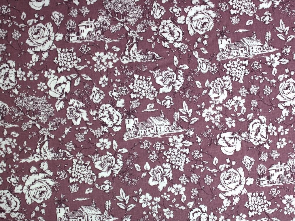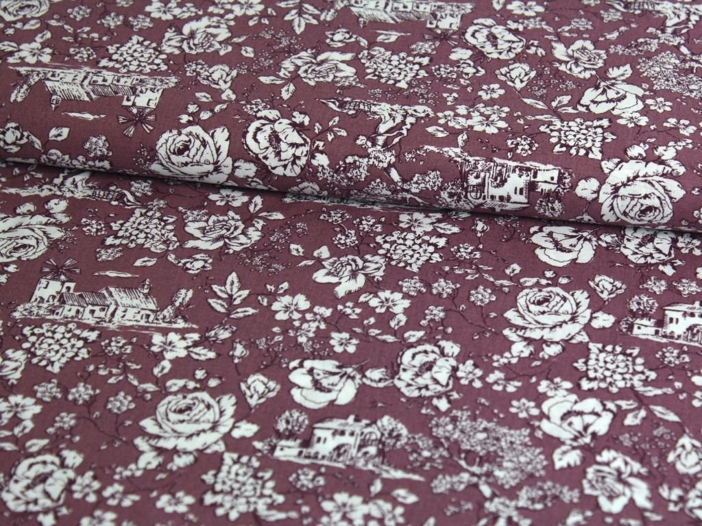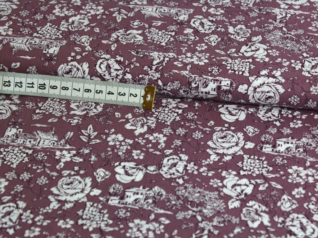 Bavlněné plátno - holandský venkov na fialové