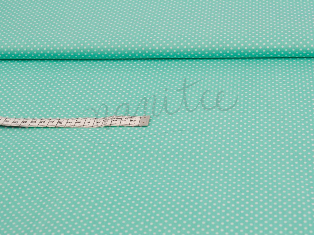 Bavlněné plátno - bílé puntíky na mentolové