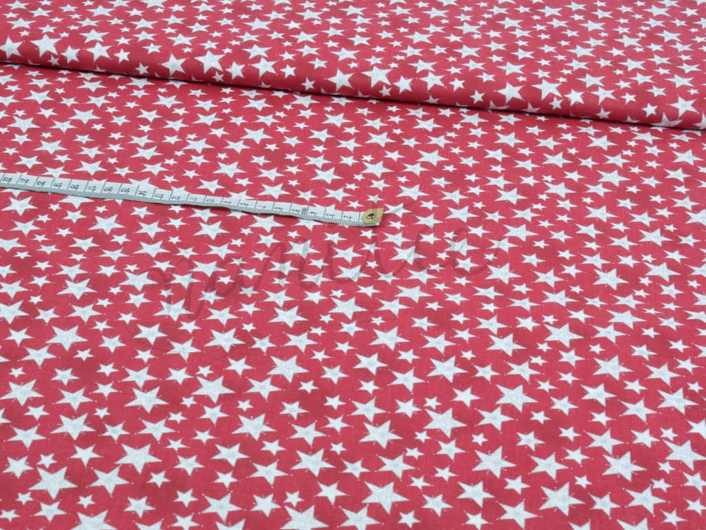Bavlněné plátno vánoční - červené s bílo-stříbrnými hvězdičkami